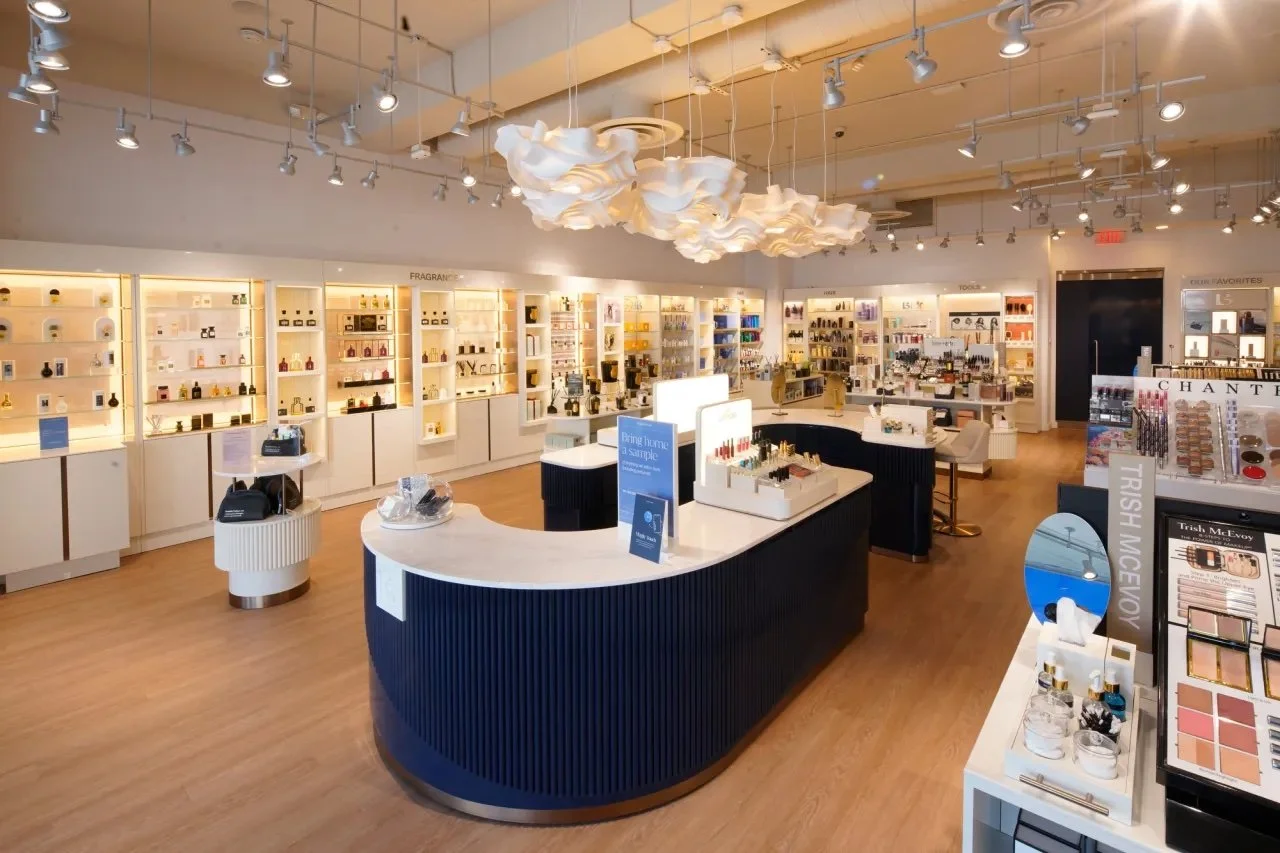 Space planning, new fixtures, and light features as part of a new brand makeover for the cosmetic company